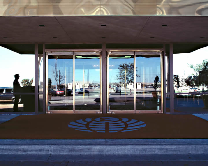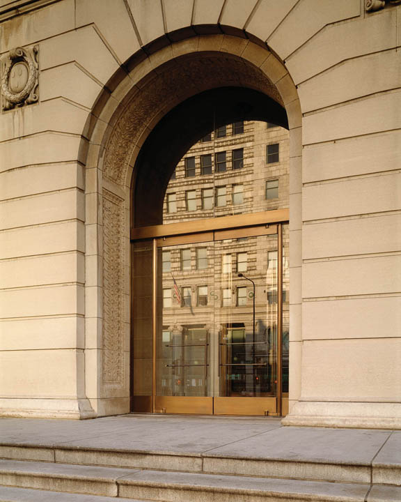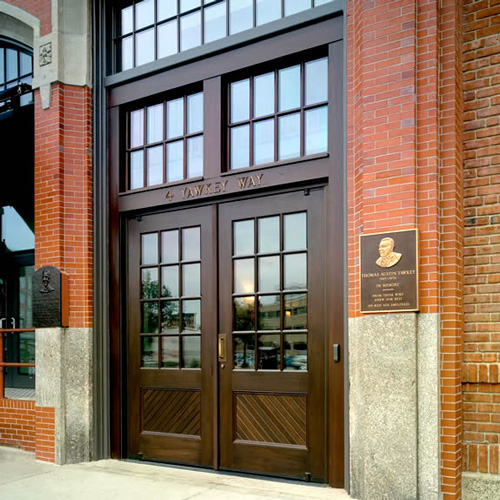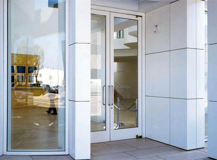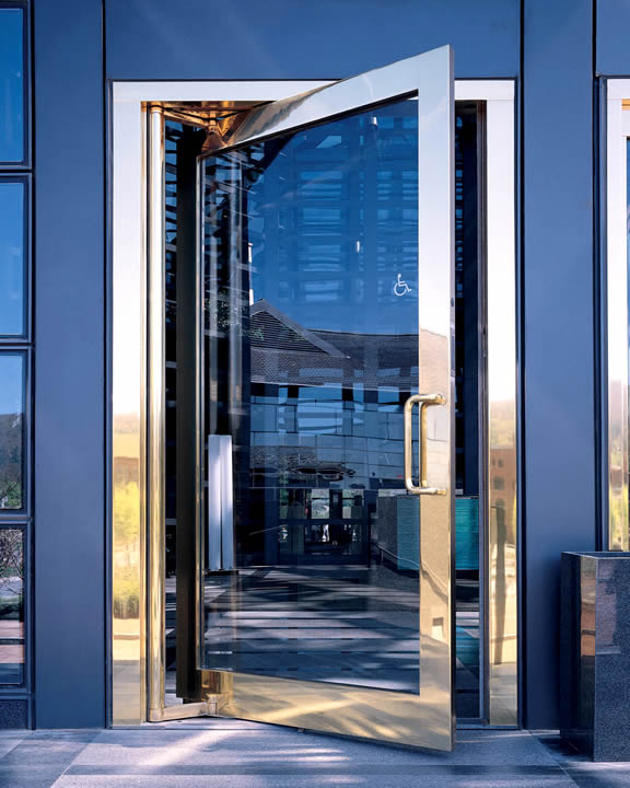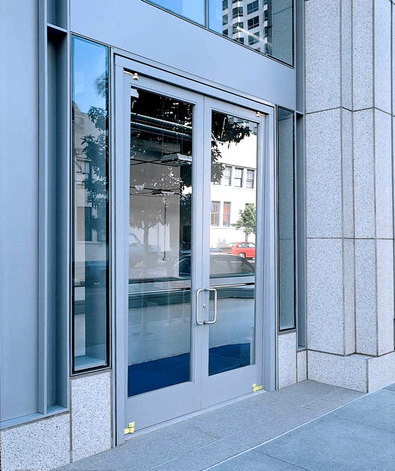 The frame on an Ellison balanced wood door is available in your choice of formed stainless and bronze, or aluminum. The shaft containing the torsion bar closer spring can be either concealed within the door frame, or exposed. These doors can also be equipped with Ellison PowerNow power operators.