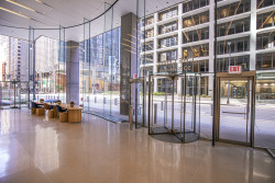 The revitalization of CME Center aimed to transform the ground-level space built in the 1980s into a vibrant city lobby. Ellison Bronze helped create this look with custom-crafted stainless steel narrow stile with glass balanced doors, giving access to a full range of amenities, including conference lounges, fitness facilities, restaurants, retail establishments, and more.