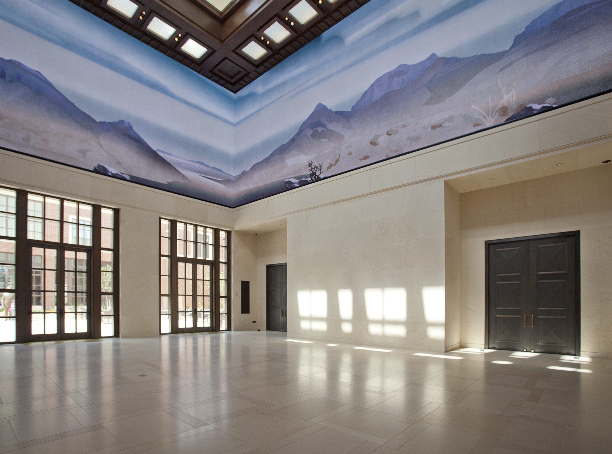 The Ellison doors are located throughout the museum, including Freedom Hall, a 14,000-square-foot formal gathering space at the entrance. Freedom Hall is the signature architectural feature of the building, featuring a 67-foot high tower. The Ellison doors also lead to an outdoor courtyard with a café.