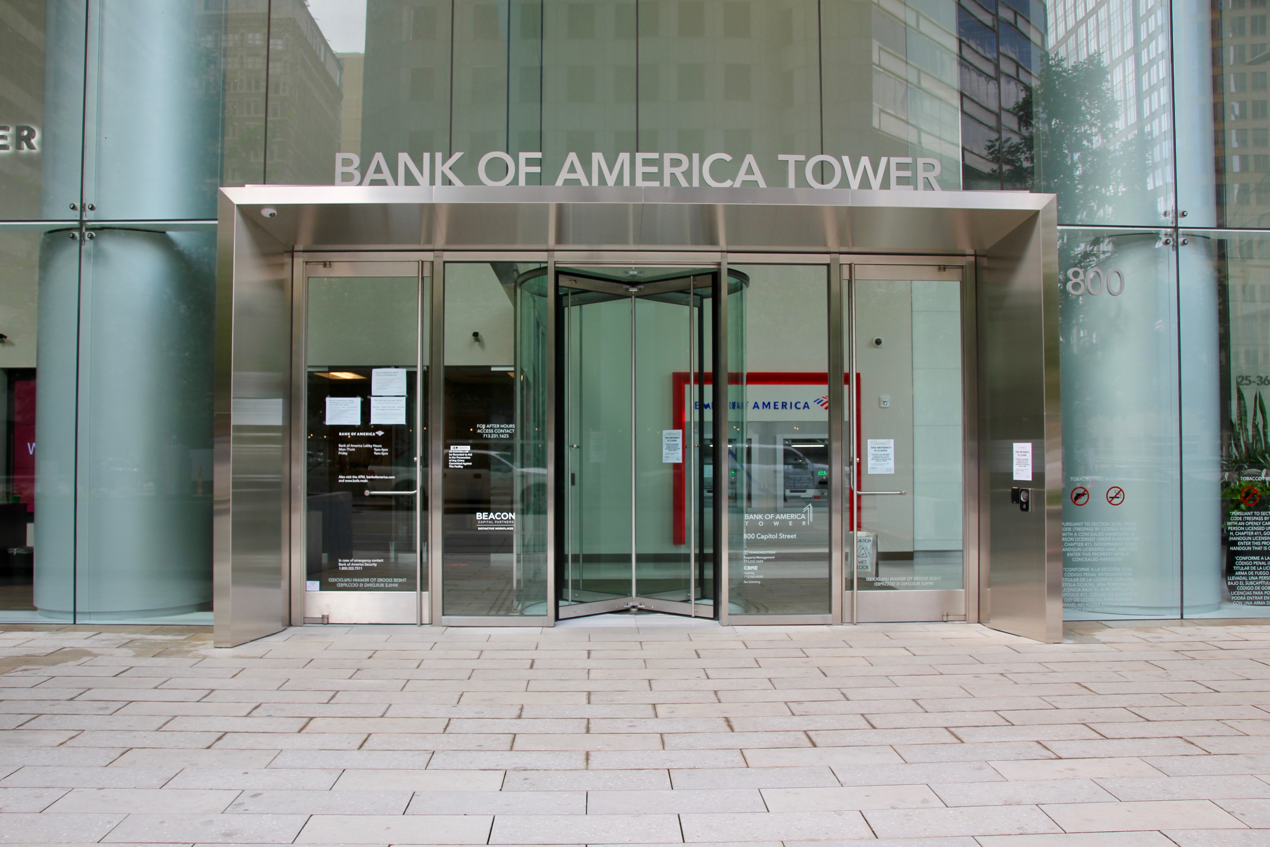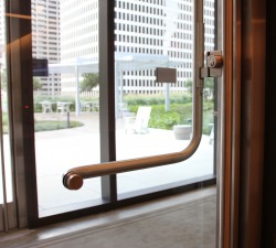 FALCONER, NY…Ellison Bronze, manufacturer of premier custom balanced doors for entrances around the world, recently provided doors for four separate entryways at the 35-story, 780,000-square-foot Bank of America Tower in downtown Houston, Texas. The Charlotte, N.C.-based bank consolidated three downtown offices into the recently constructed, state-of-the art building, putting more than 600 employees under one roof.