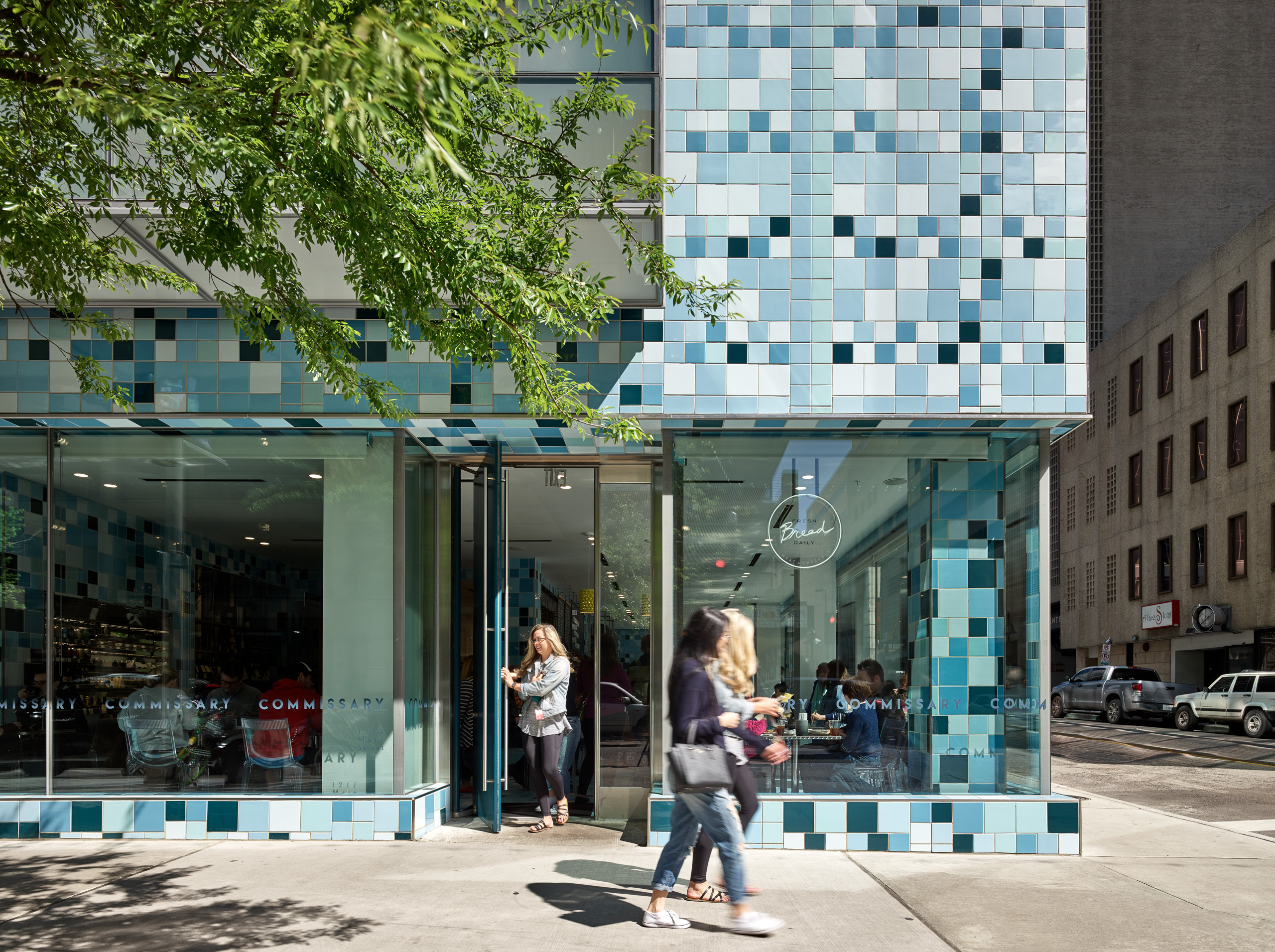 The basement and ground floor of 1217 Main Street are occupied by a butchery and the Commissary restaurant, the 2nd floor is an interior design firm, and floors 3-5 are occupied by the architects themselves, offices home to 5G Studio Collaborative.