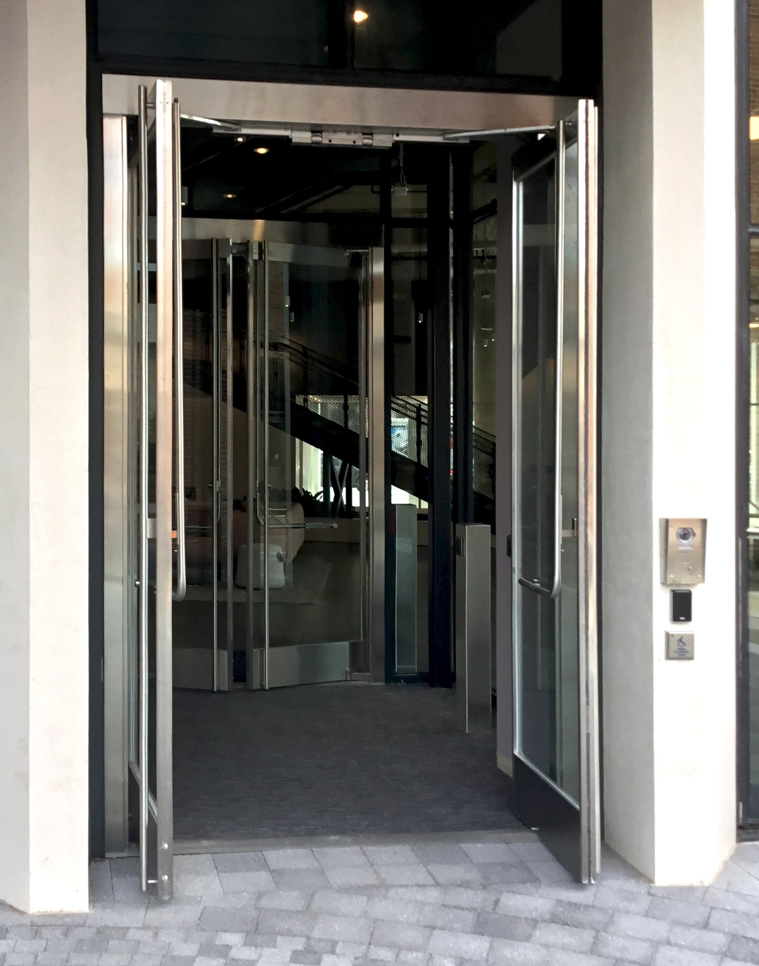 The specification of high-performance narrow stile balanced doors allowed for maximum glass use that contributed to an open atmosphere. The doors were installed at multiple different entrances across the first floor, including the main entryway to the building.