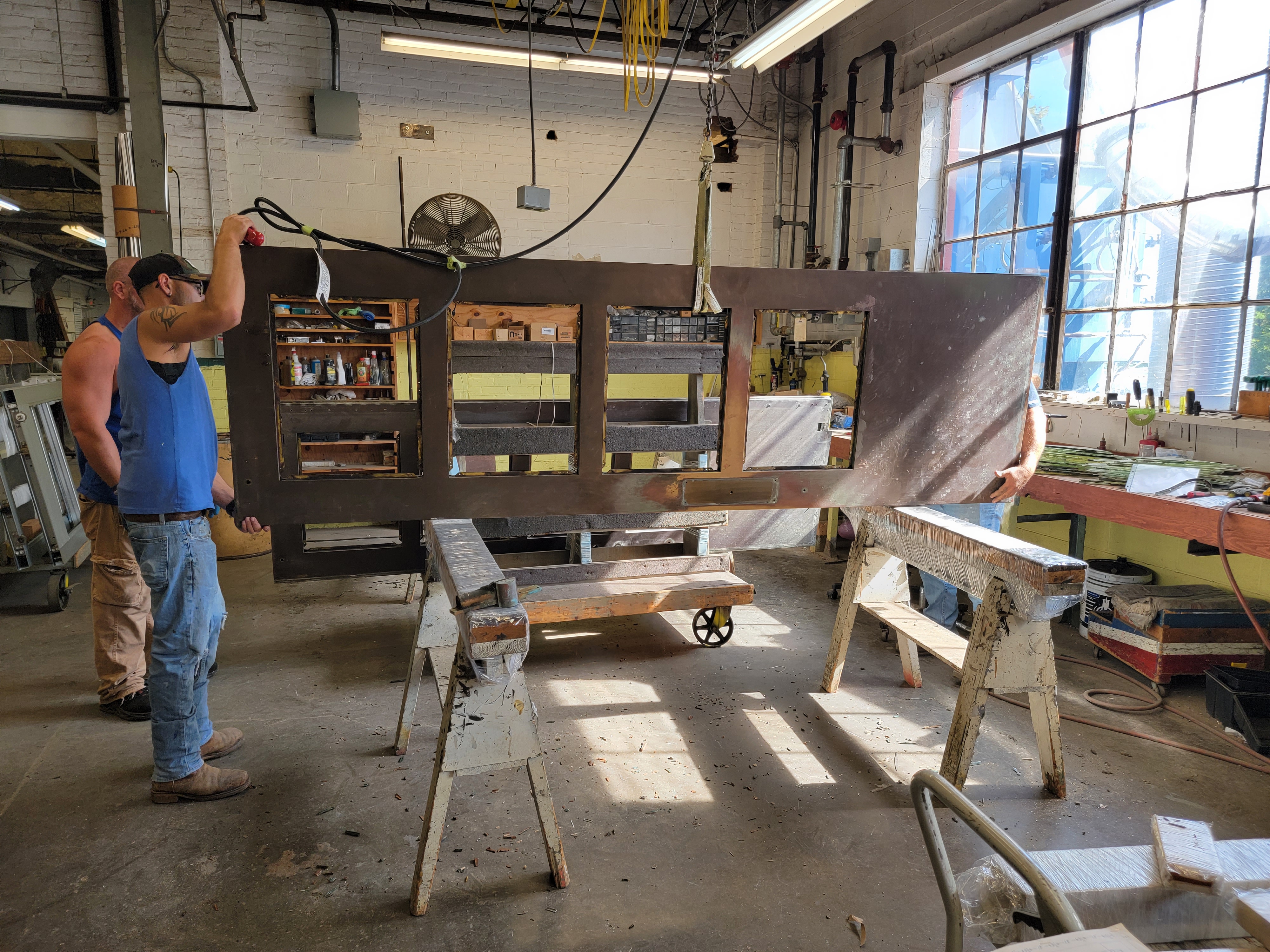 Instead of working with a contractor or separate installer, Ellison Bronze team members and door craftsmen removed the doors one by one, restoring them at its Falconer, NY, facility about an hour from the courthouse.