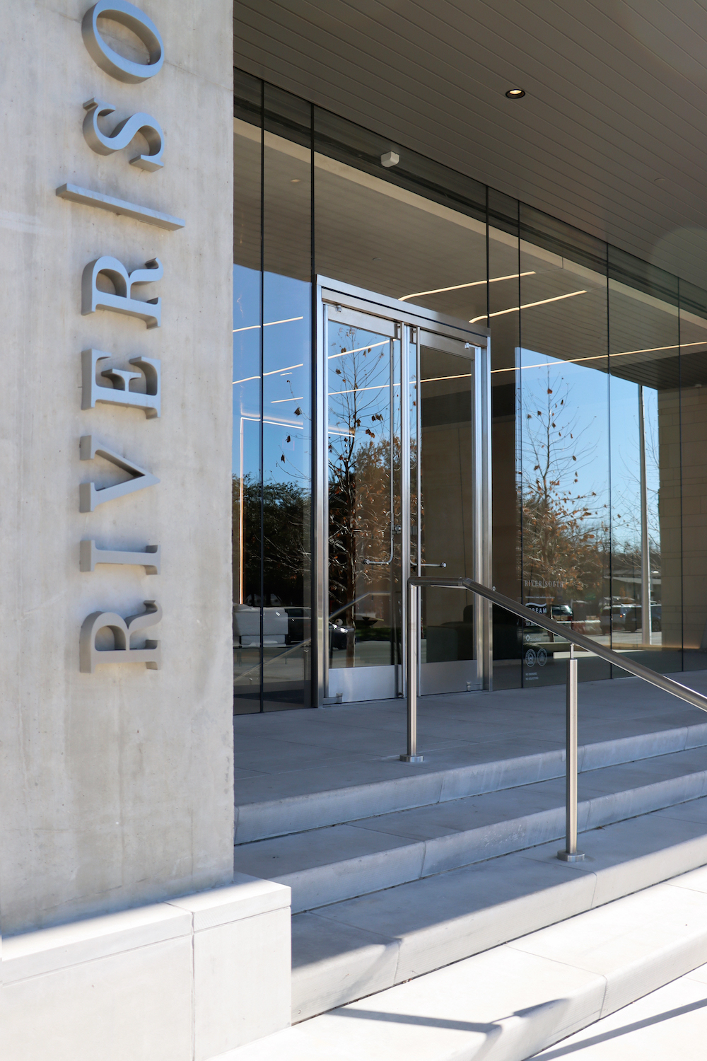 The project team specified satin stainless steel Ellison balanced doors in a narrow stile with tempered glass to match the glass curtainwall. The doors allow natural light into the lobby space and give RiverSouth’s main entrance a cohesive look and feel with the rest of the structure.