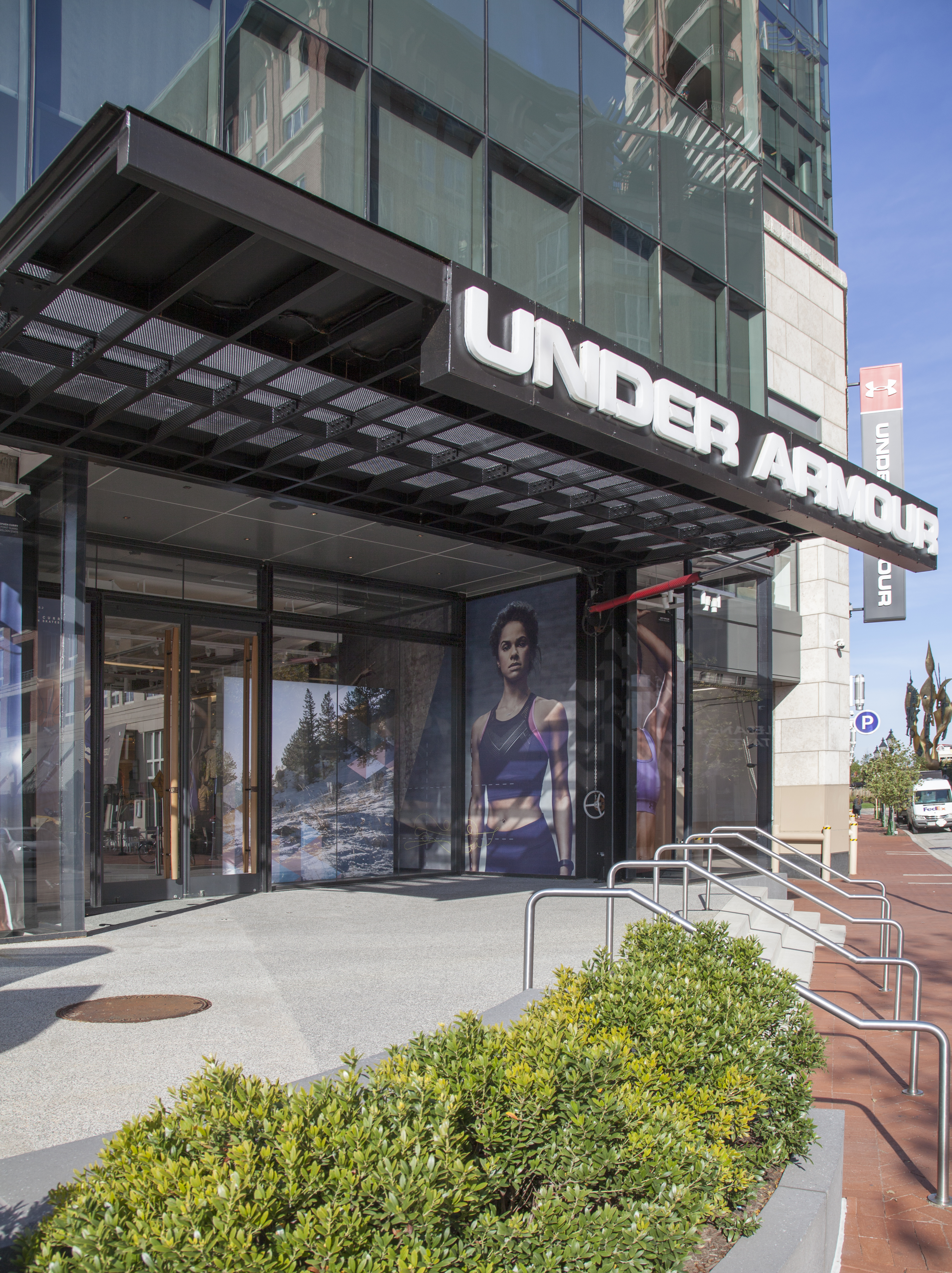 Ellison Bronze custom balanced doors help companies “make a statement” – and this is particularly true for the Baltimore brand house location for Under Armour, Inc., the sports clothing and accessories company. Ellison doors mark the signature of performance for the brand house and help maintain a high-functioning entryway for decades to come.